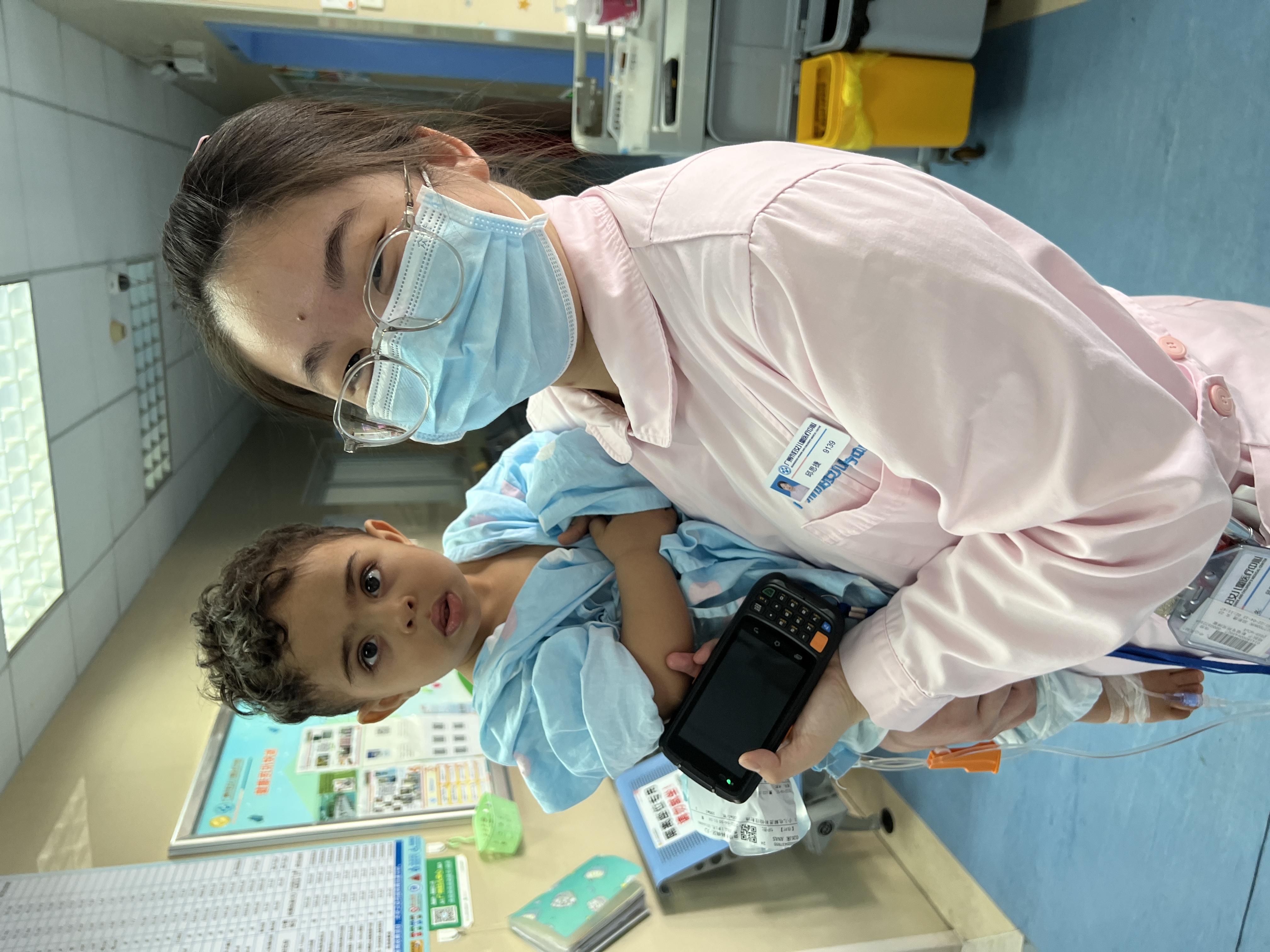 外国宝宝感受到护士姐姐的温柔护理,喜欢上护士姐姐。