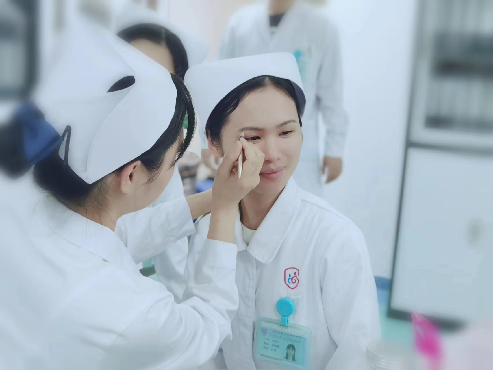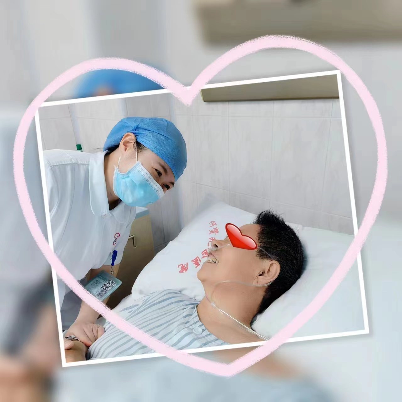 经过精心护理,病人快康复,会心一笑!